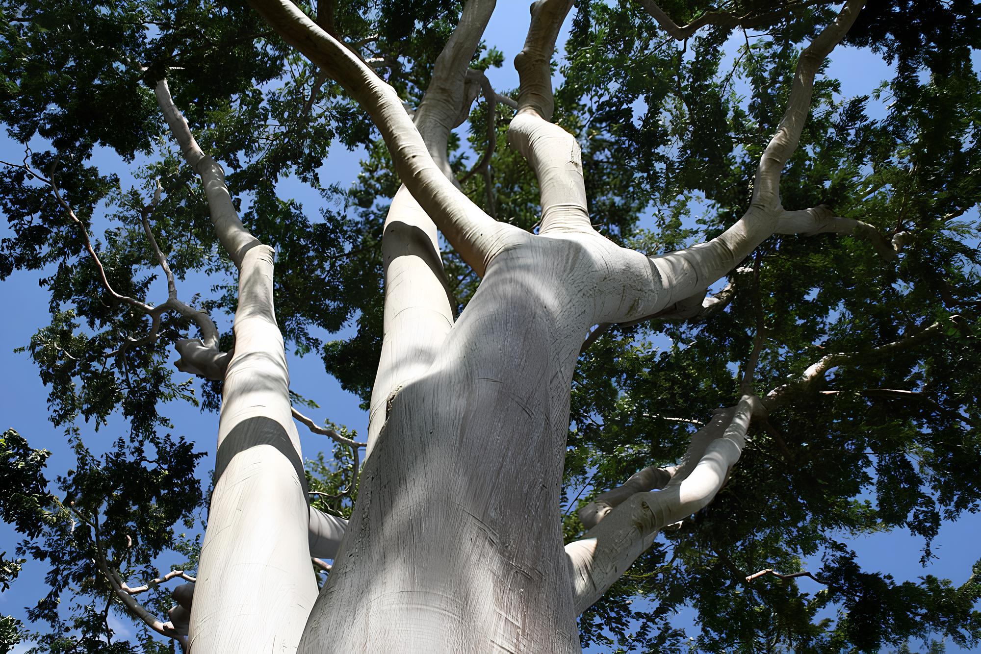 Quando seca, a Albizia niopoides oferece uma madeira de tonalidade interessante e textura marcante. Em projetos onde a árvore aparece em seu estado seco — seja como peça decorativa, tronco preservado ou elemento escultórico — ela cria:
